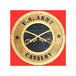The Cavalry Wall Plaque is Completely handmade from start to finish, this collectible piece comes 12” in diameter in a truly unique 3D design. If you prefer a smaller variety, the plaque is also offered in a 9” diameter option. The United States Cavalry emblem stands 1/4” off of the backboard, while the inner ring on which the text is printed stands 1/8” from the backboard. The staggering placement is what gives the 3D appearance.